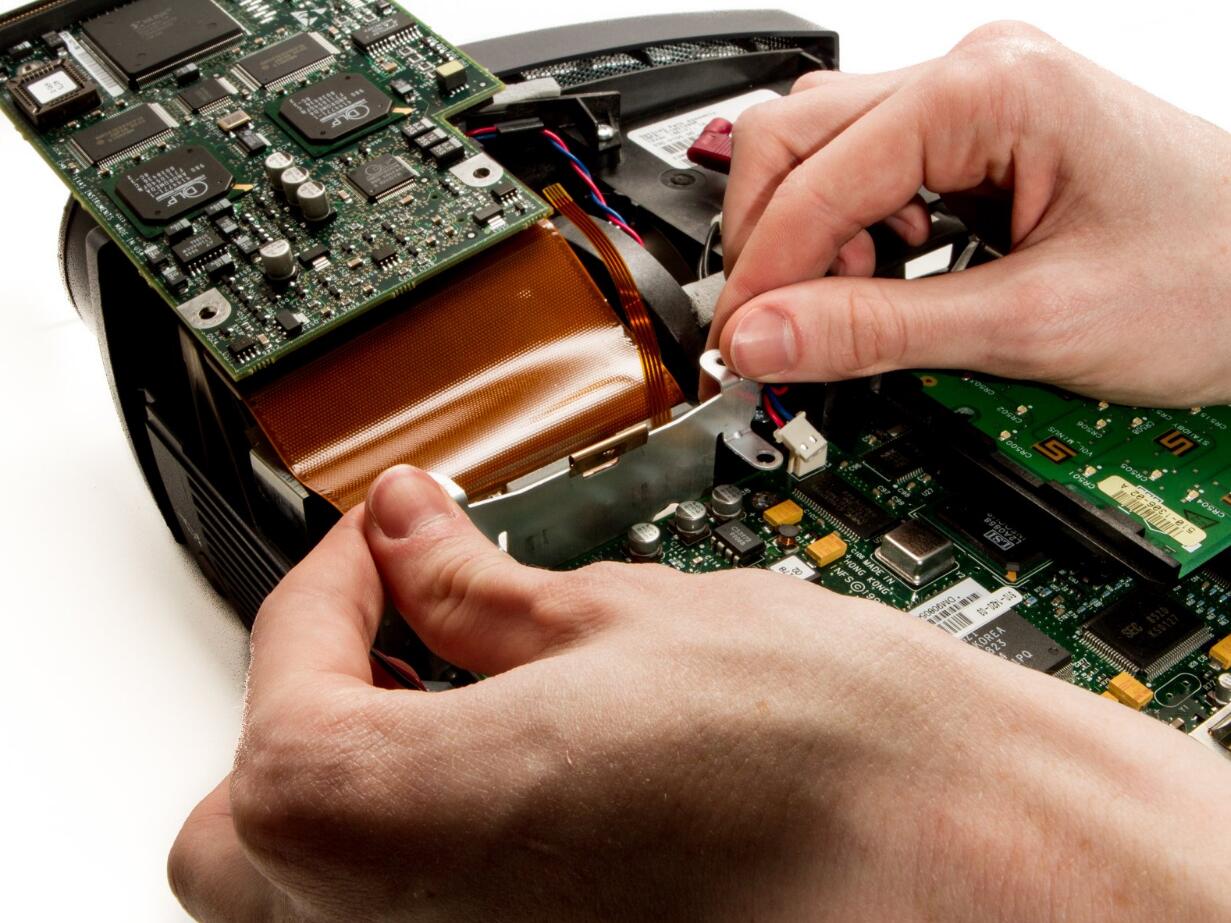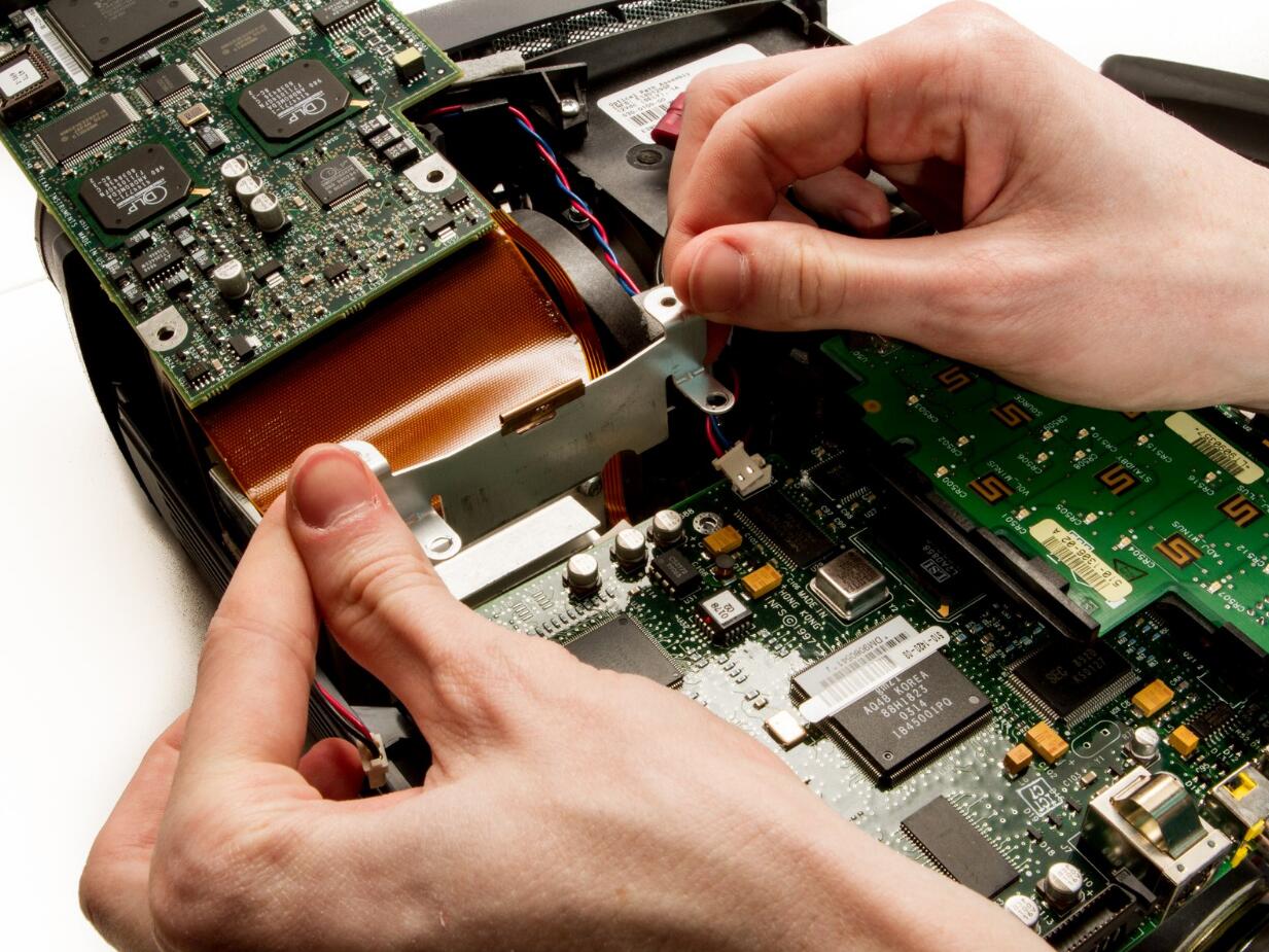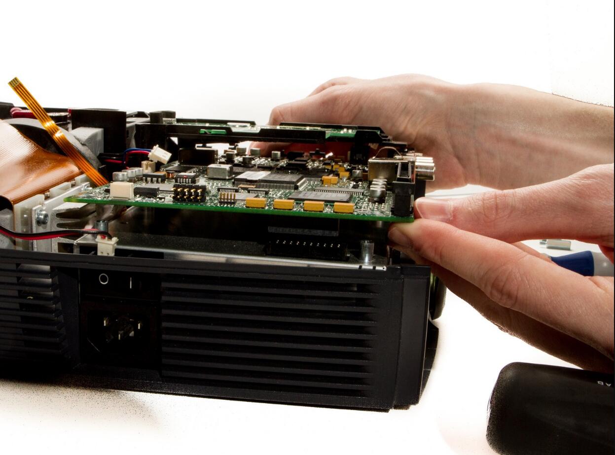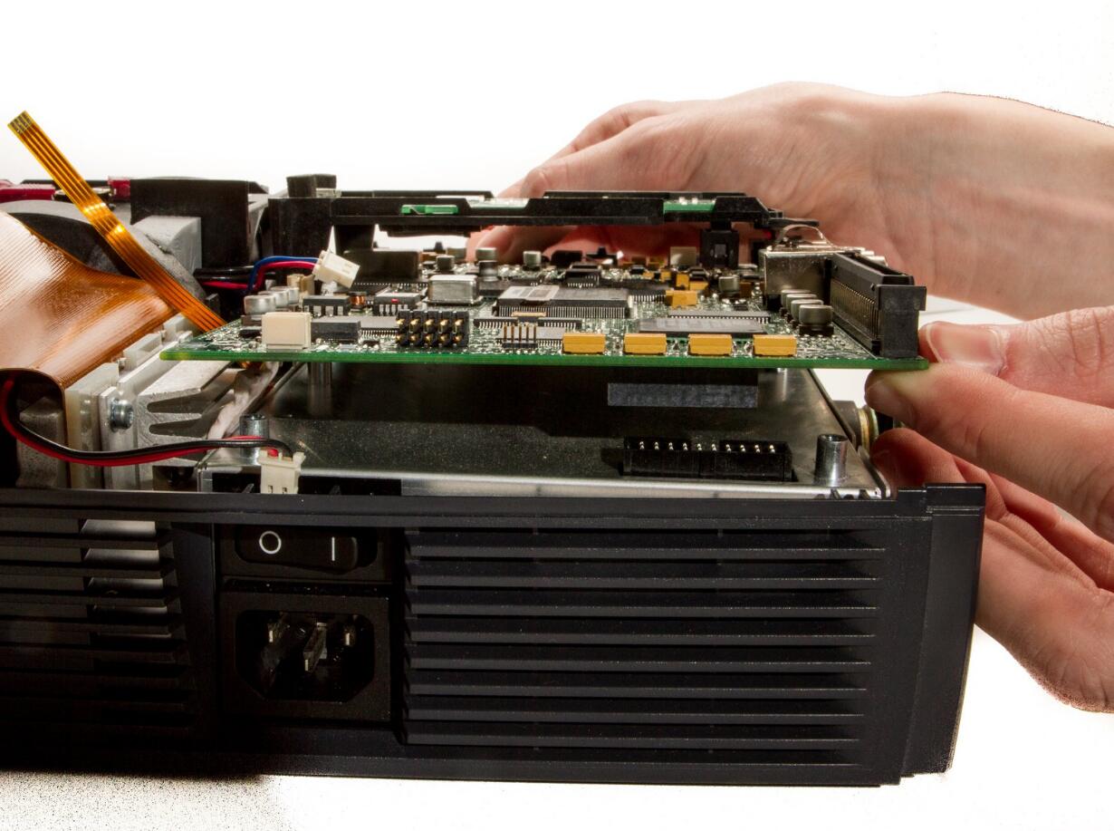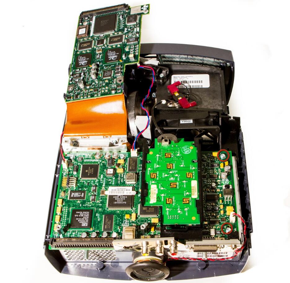 l Detach the DLP board from where it is connected to the motherboard by a large 100 pin connector.