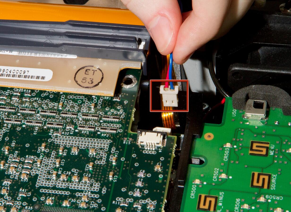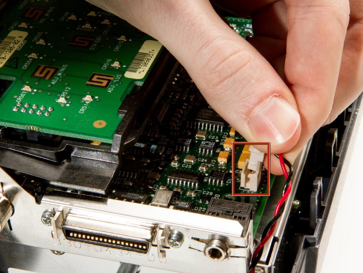 l It may be easier to disconnect this cable if you orient the power supply with the speaker down, so you can reach in more easily.