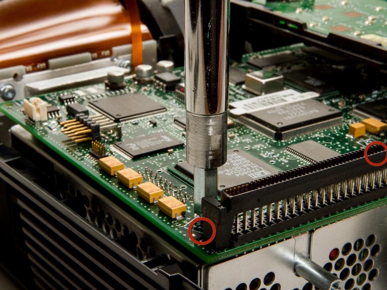 l The second screw is located behind the right side of the 100 pin connector.