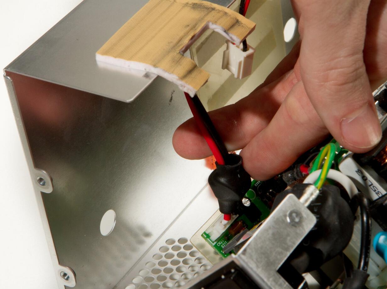 l Carefully open the power supply, and be mindful of the cable that will be pulled taut that needs to be disconnected.