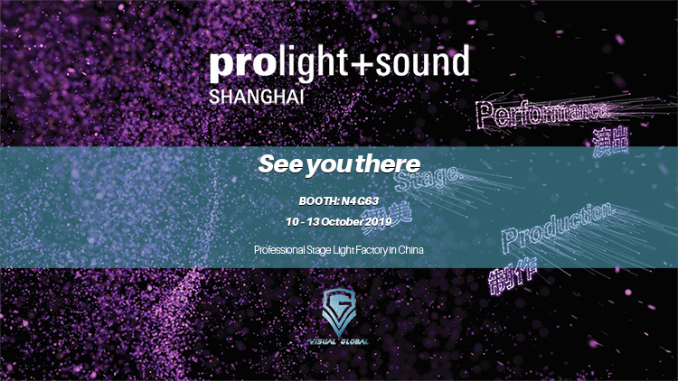 We, VG LIGHT EQUIPMENT CO., LTD, will attend Prolight+Sound Shanghai during 10~13th of October 2019. The latest product will be rolled out for worldwide clients. Welcome you all to meet us and products at Booth N4 G63, all your comments and feedbacks will be appreciated, see you there.