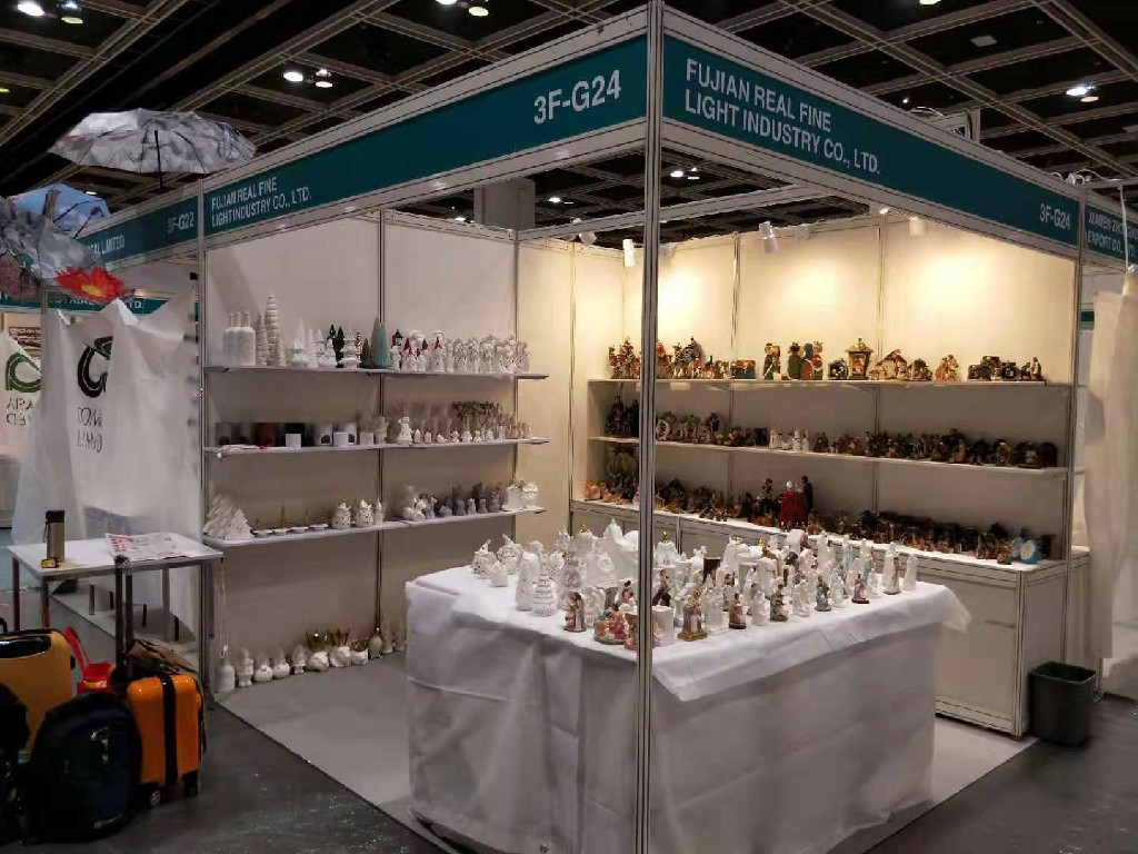 Annual Hong Kong Mega Gift Trade Show took place from 20th Oct. to 23th Oct. and 27th Oct. to 29th Oct. in HongKong Convention and Exhibition. FuJian Real Fine Light Industry participated these two shows and the new design LED painting ceramic religious statues of Real Fine appeal to the customers' strong attention! During the show period, Real Fine reached agreement of cooperation with many customers and made great quantity of new friends。