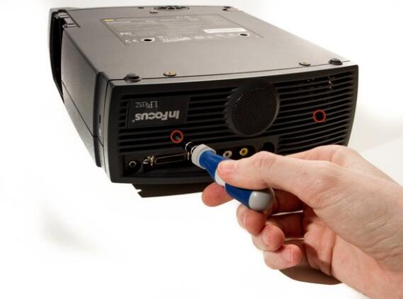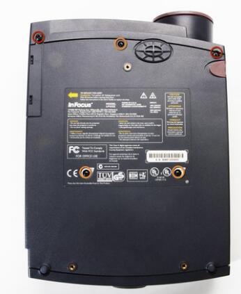 l Remove the two 8.5mm rear screws holding the rear case plate to the projector using the Phillips #1 screwdriver.