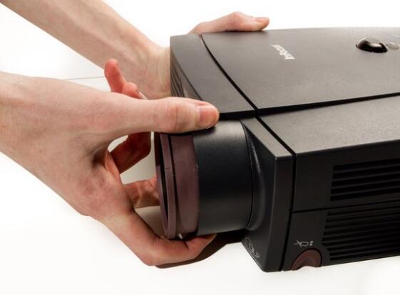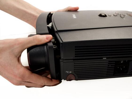 l Place the projector on its back (buttons down) with the lens facing away from you.