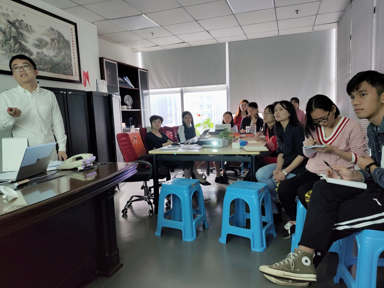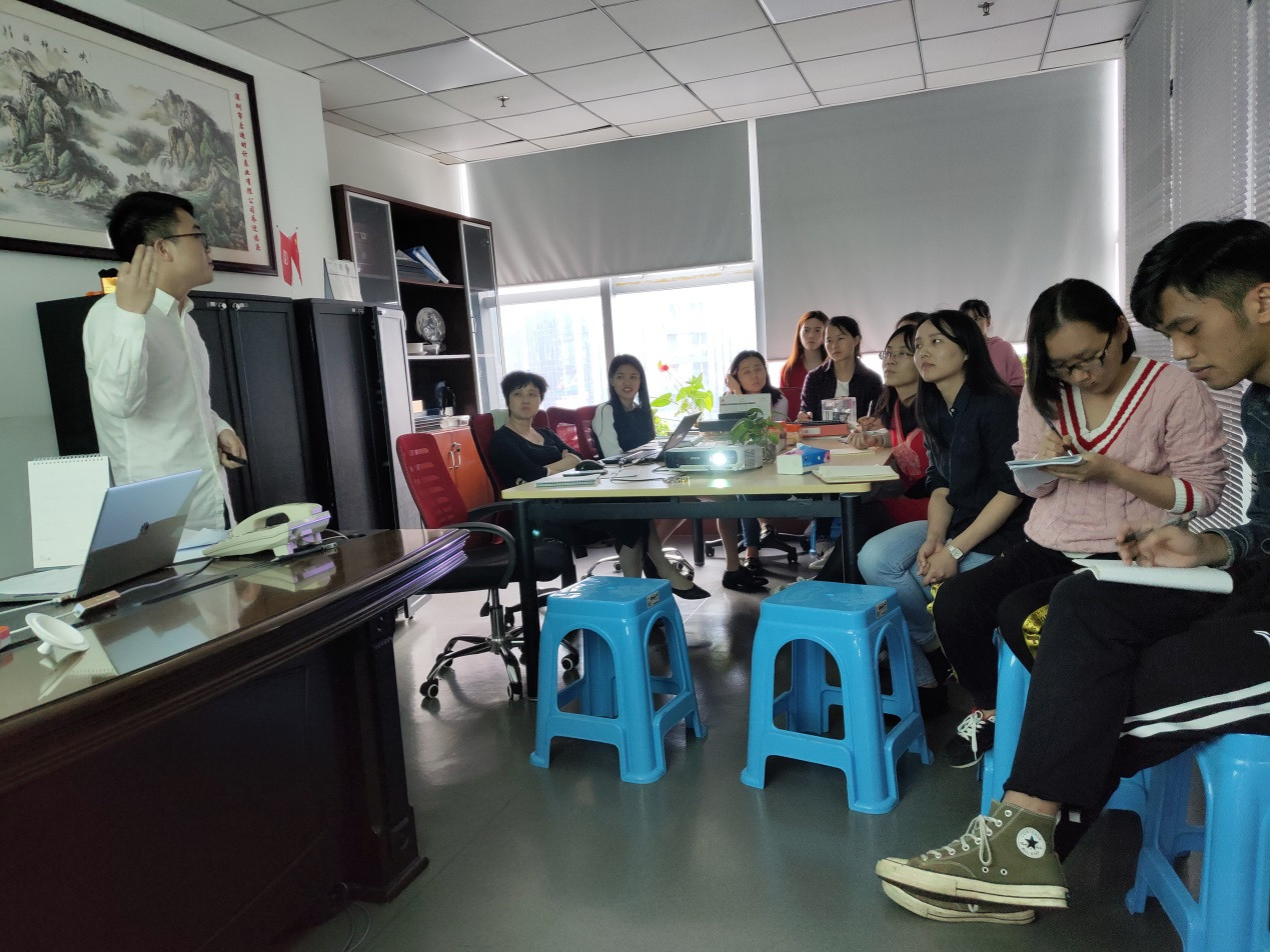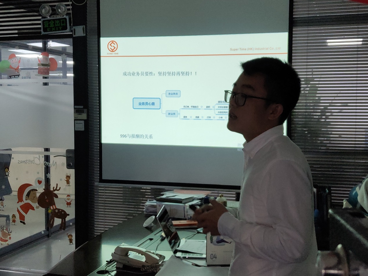 There were 4 colleagues came outside to learn this topic, and come back to share. This meeting topic has 3 parts of sales, including the psychological quality of a salesman, the reason to be a salesman, and how to be an excellent salesman.