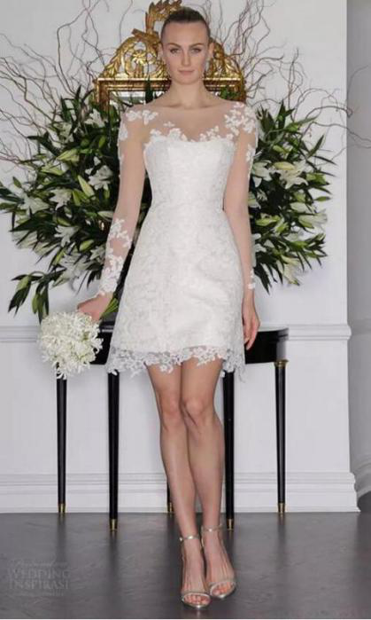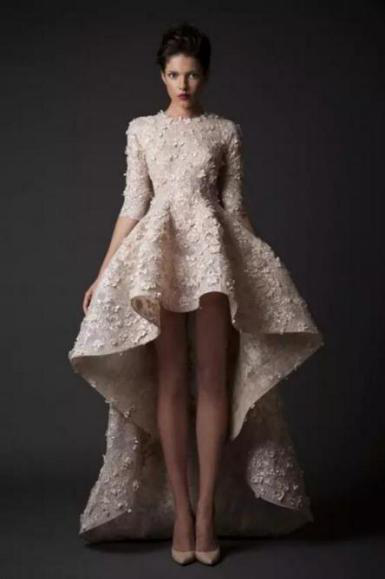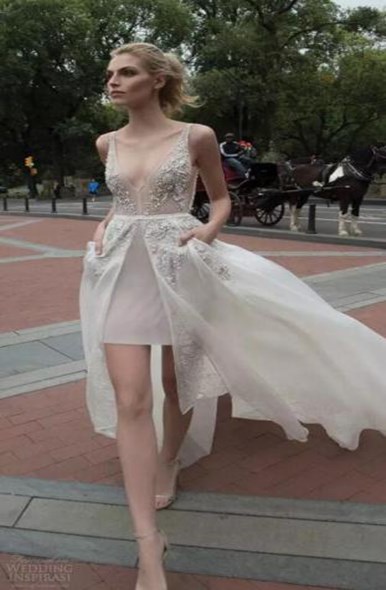 First of all, short wedding dresses are the most popular and the most accepted, it is this style with short front and long back. Although it is a short one, it has a long back to give it ample momentum, and it feels windy when walking.