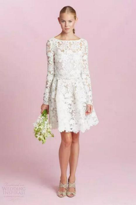 After appreciating the above two styles, the next thing we will talk about is the most common one piece dress-style short wedding dress. It has a variety of styles, through different materials, you can say that it is playful and smart, or it can be said that it is refreshing and simple, especially with a long veil, which has a very eye-catching contrast.