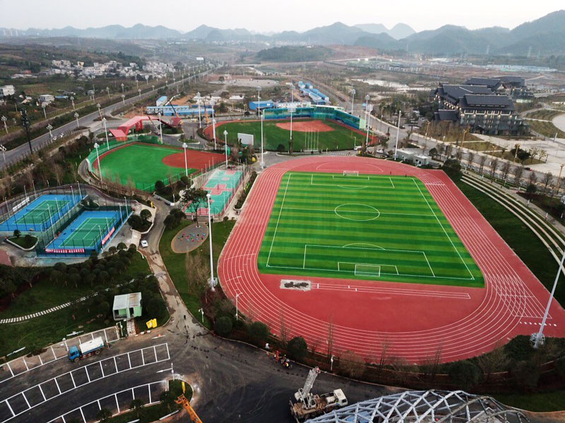 2. Meet your multi-functional stadium construction: silicon PU basketball court , acrylic acid tennis court ,artificial grass football field , baseball and softball courts, standard 400m plastic runway, park overall fencing facilities and other materials and venues construction