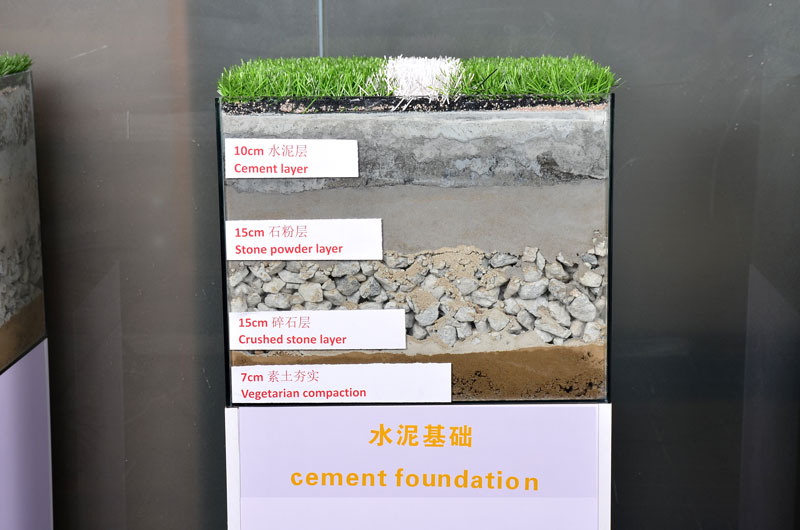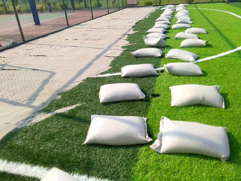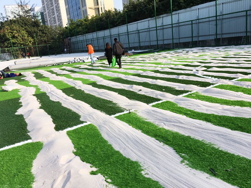 (1)Quartz sand:25Kg/sqm :Quartz sand have strong water discharge capacity, Moderate Quartz sand can prevent Artificial Turf from moving . Fill 25kg of Quartz sand into every square meter to straight each of the yarn,protect suitable hardness for the Court,Together with Shock pad and Rubber can provide Better movenent performance.