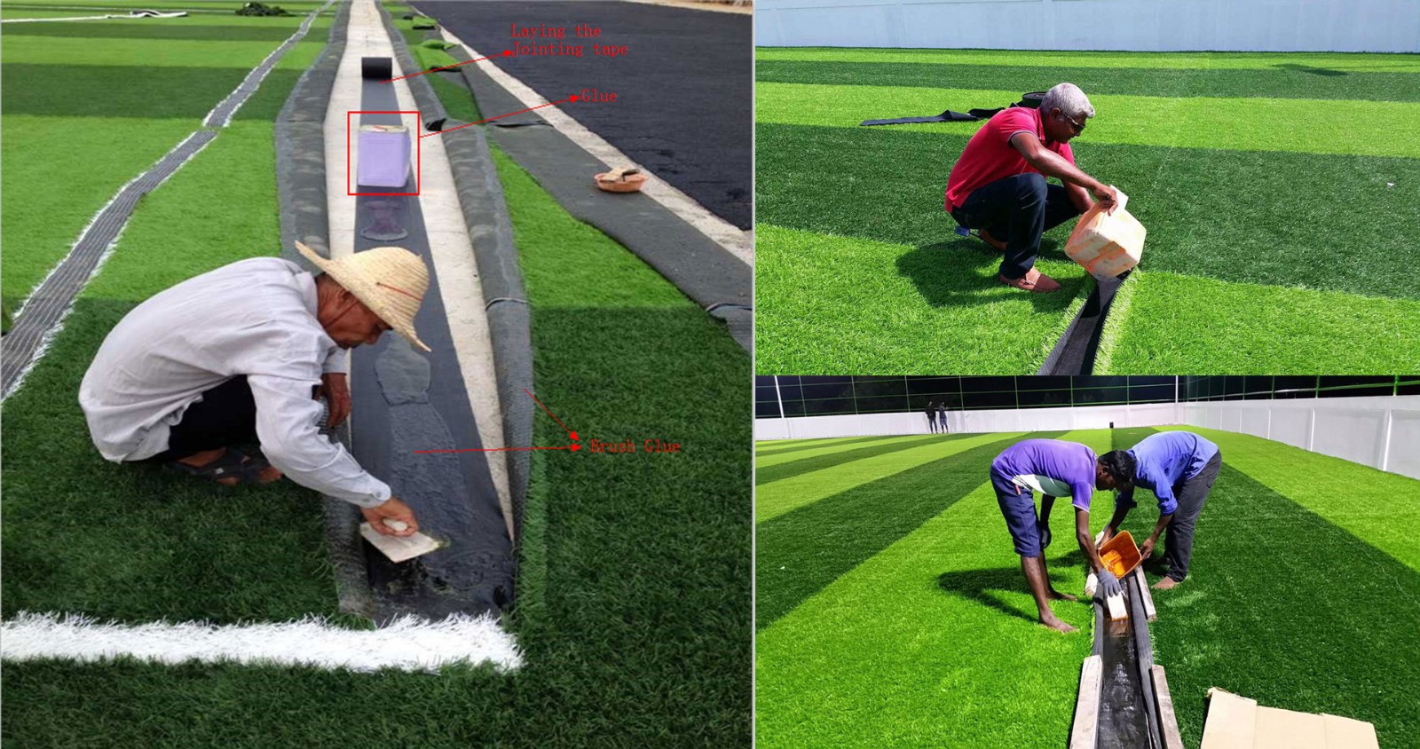 (4)Use joint tape to bond between grass gaps.