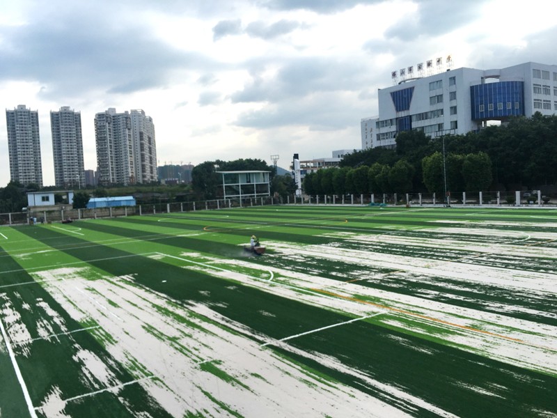 (2)Rubber:5Kg/sqm:Rubber can provide a good bounce and shock resistance for Artificial grass court system.It can reduce the damage from the process of Excising and Provide road holding for the Players. Fill 5kg of Rubber into every square meter to get a better protection for sport.