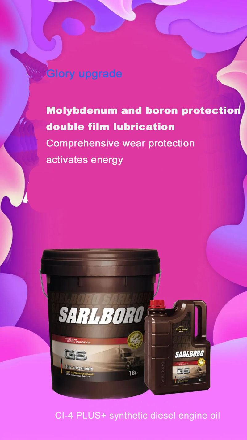 In 2020, Sarlboro CI-4 Plu+ synthetic diesel engine oil has achieved a technological upgrade. It adopts molybdenum-boron double film technology, which greatly improves the oil's anti-friction and clean performance, wear resistance and pressure resistance, and has excellent performance. This technology can form a thin and high-strength oil film protective layer on the metal surface of the engine, which can significantly reduce the coefficient of friction and reduce engine wear caused by friction, thereby achieving a good driving experience with long-lasting pressure resistance and providing car owners with outstanding performance Cost-effective choice.