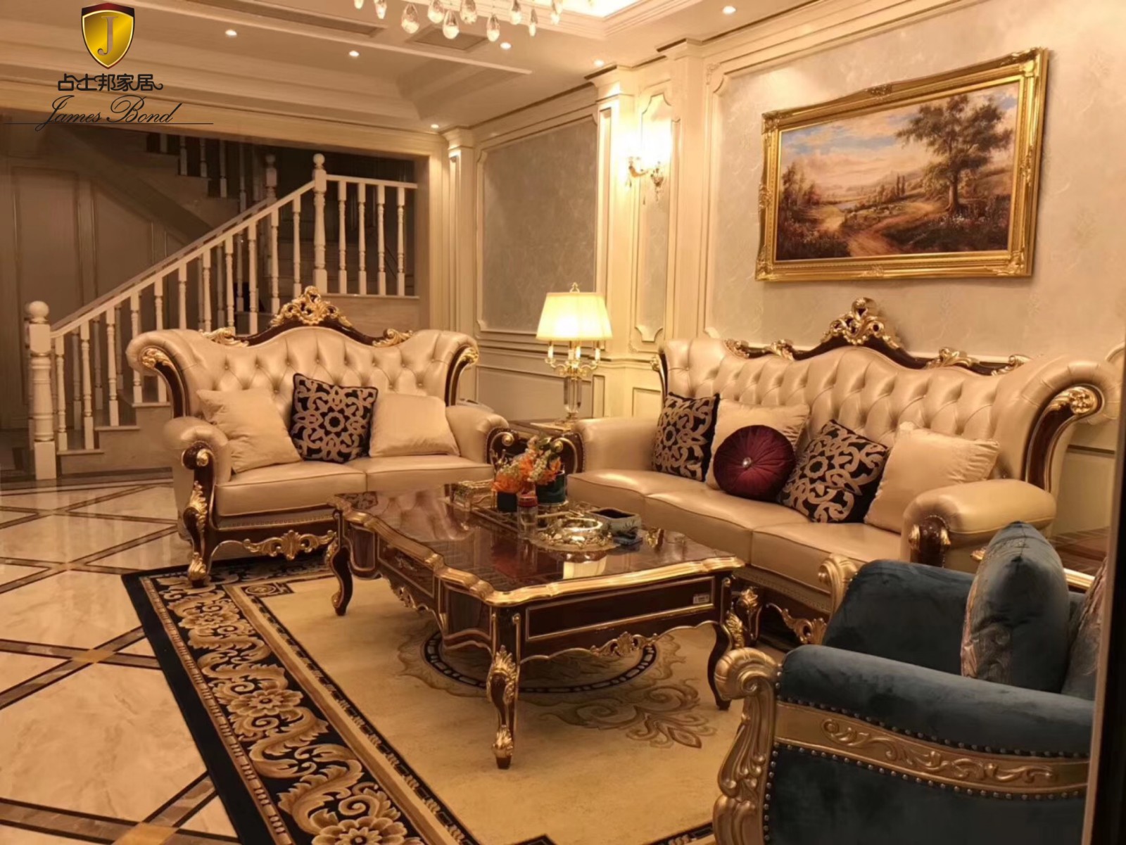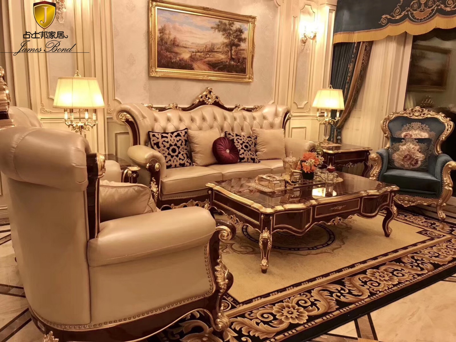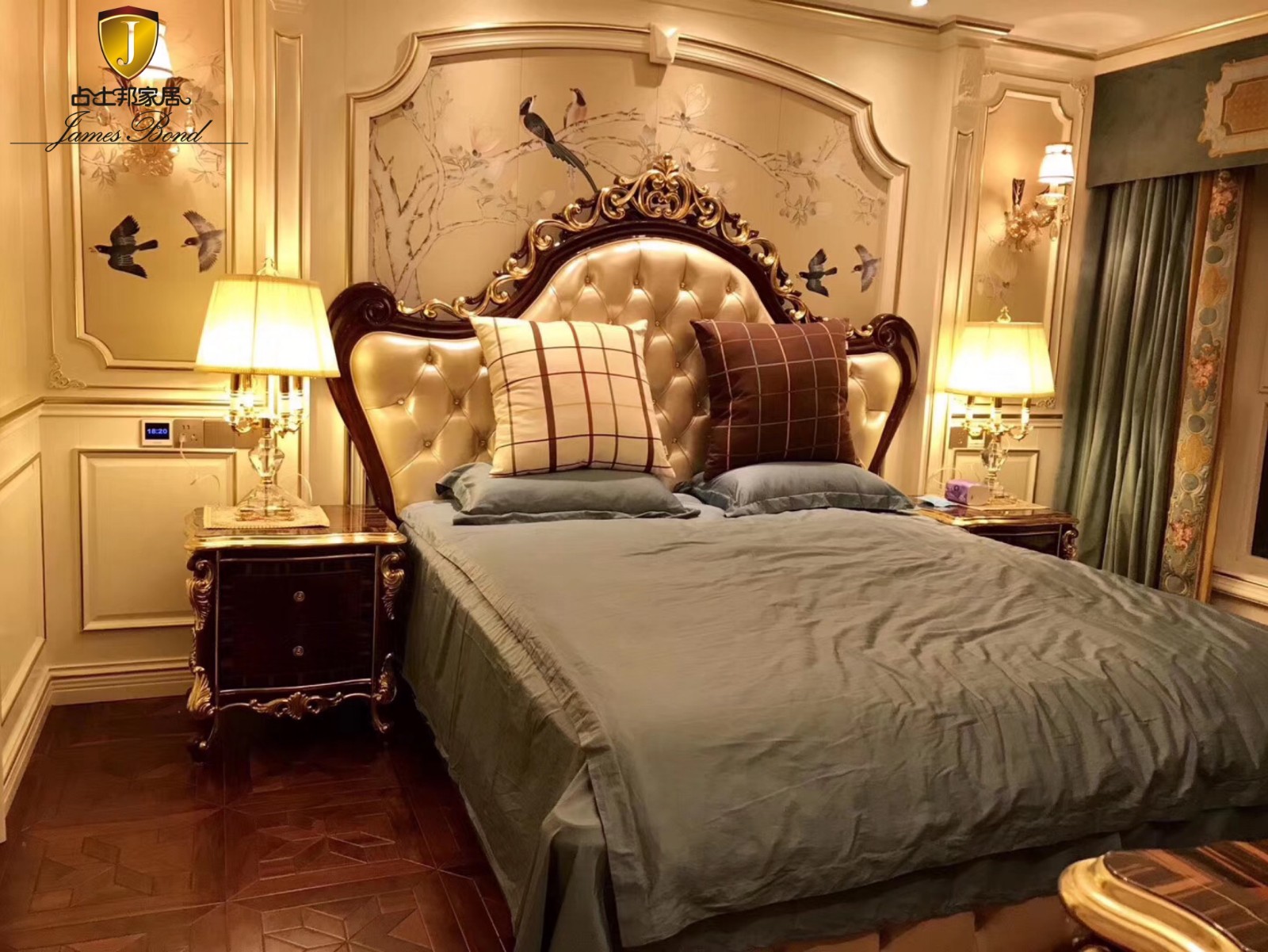 Finally, let's take a look at Mr. Chen's bedroom. It's the same leather color. Mr. Chen's favorite beige and James Bond classic bed. Many customers responded that they were very comfortable and beautiful. According to the research, one third of the time in one's life is spent sleeping, that is to say, the bed also accompanies us for such a long time, so a good classic bed is very important. If you want to buy a classic bed, look for the classic furniture of James Bond!
