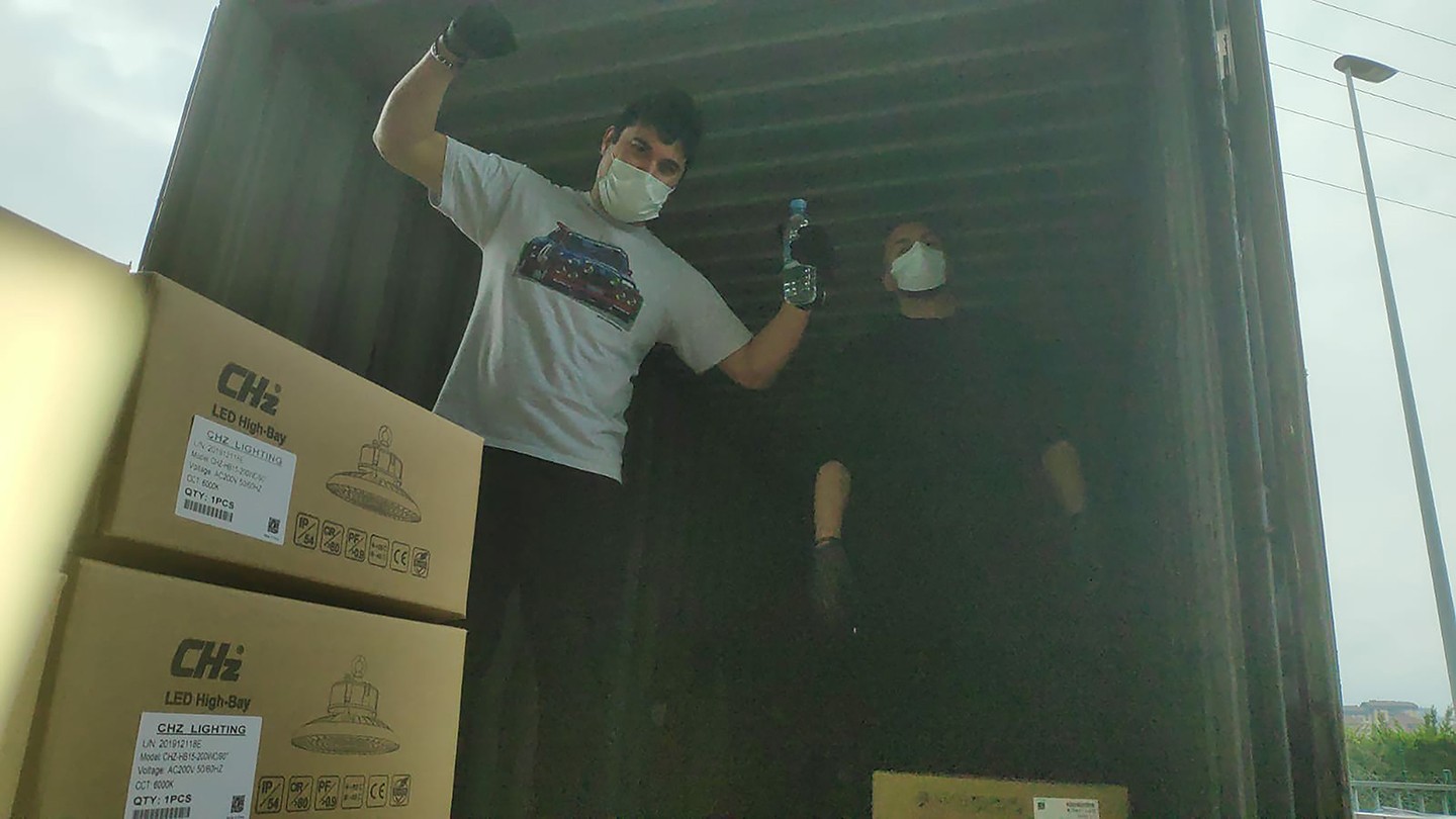 On April 1, 2020, the 40HQ container from Shanghai arrived at the port of Bilbao, Spain. The CHZ Spanish company team braved a serious outbreak and consciously arrived at the company to start unloading together; Spain began in early March due to the outbreak Development, the government announced the closure of the city, it is estimated that everyone works from home to prevent further infection. However, the job is an order. At the order, everyone started to unload CHZ lighting and other goods, and it took nearly 2 hours to move the goods to the warehouse.