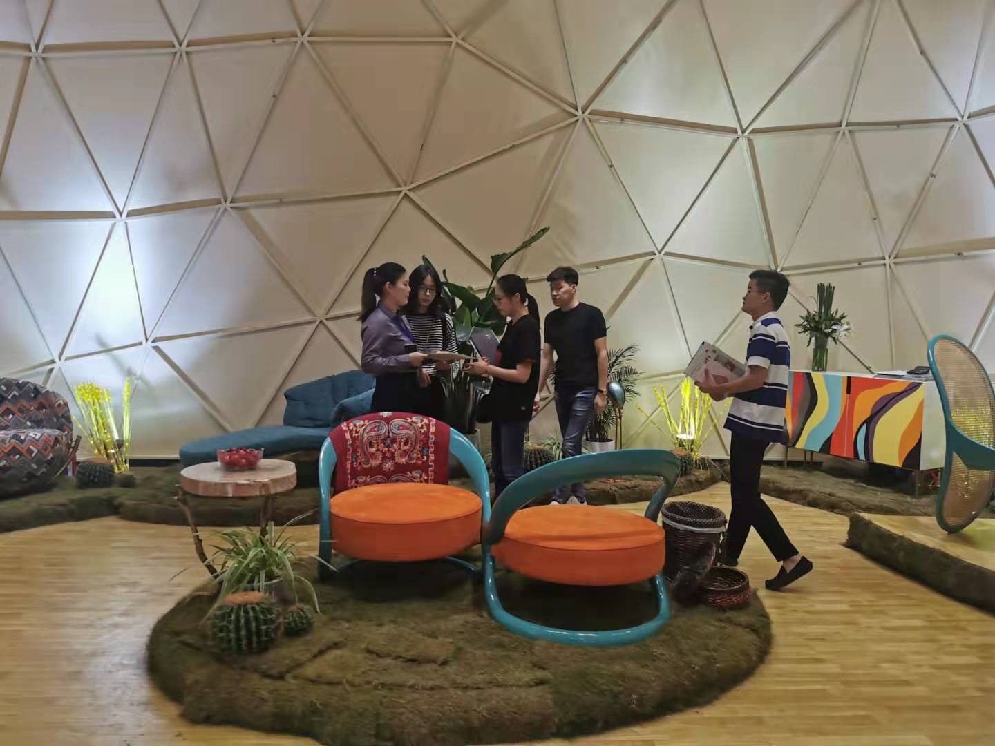 Humanity and Spirit (H&S) being an advocator of Chromatic furniture takes the first step to prove the suggestion from these journalists. The result is a great success. Since H&S has our own designer team, we designed our booth in China International Furniture Fair with unique idea and motivation. Because we always take the customer in the first place, we decided to create a comfortable environment for all guests is more important and more attractive, instead of presenting all products to the public. Therefore, during the exhibition, our team presented our brand with passion, politeness, and comfort, and won great respect from all guests