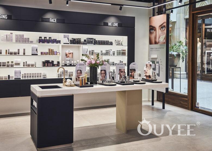 The eclectic aesthetic uses curvy and voluptuous elements, with different materials and colours that would form a contrast with each other. The Solution: A Strategy for an Ideal Customer Experience. At first glance, the shopfront shows off a selection of hero products on a metal ‘pill’ shaped wall panel on one side. On the opposite wall is a light taupe coloured display unit, in a curved form that creates a funneling effect to entice customers to explore the store offering inside.A second bespoke island is located at the back of the store, for staff to provide demos to customers, or run workshop events. A coffee machine and drinks bar concealed in the timber joinery would open up for such events.