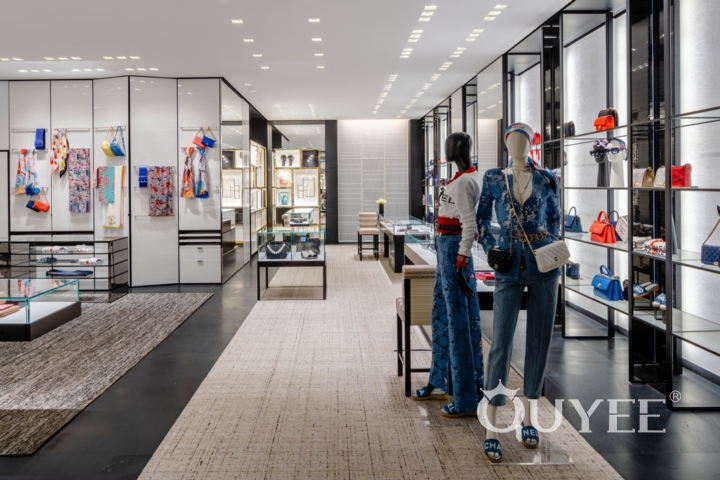 The third floor is exclusively dedicated to ready-to-wear, and each setting is furnished with custom sofas and unique antique pieces. Artworks throughout the third floor are expressed by an extensive range of materials and textures. On the floors, bespoke carpets cast in natural materials and neutral tones add warmth to the space. Mind you, even the dressing rooms are adorned with art works. The private reception rooms on the top floor feature sculpted bronze boxes by Ouyee display designer team.