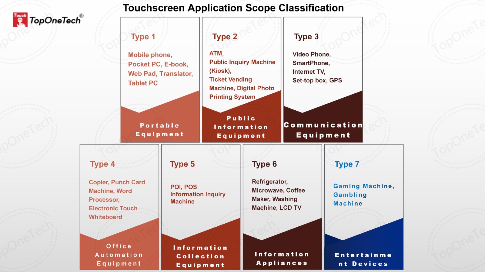 The application scenarios and terminals of touch screens are very extensive, and they can be divided into 7 categories from the perspective of scene types: