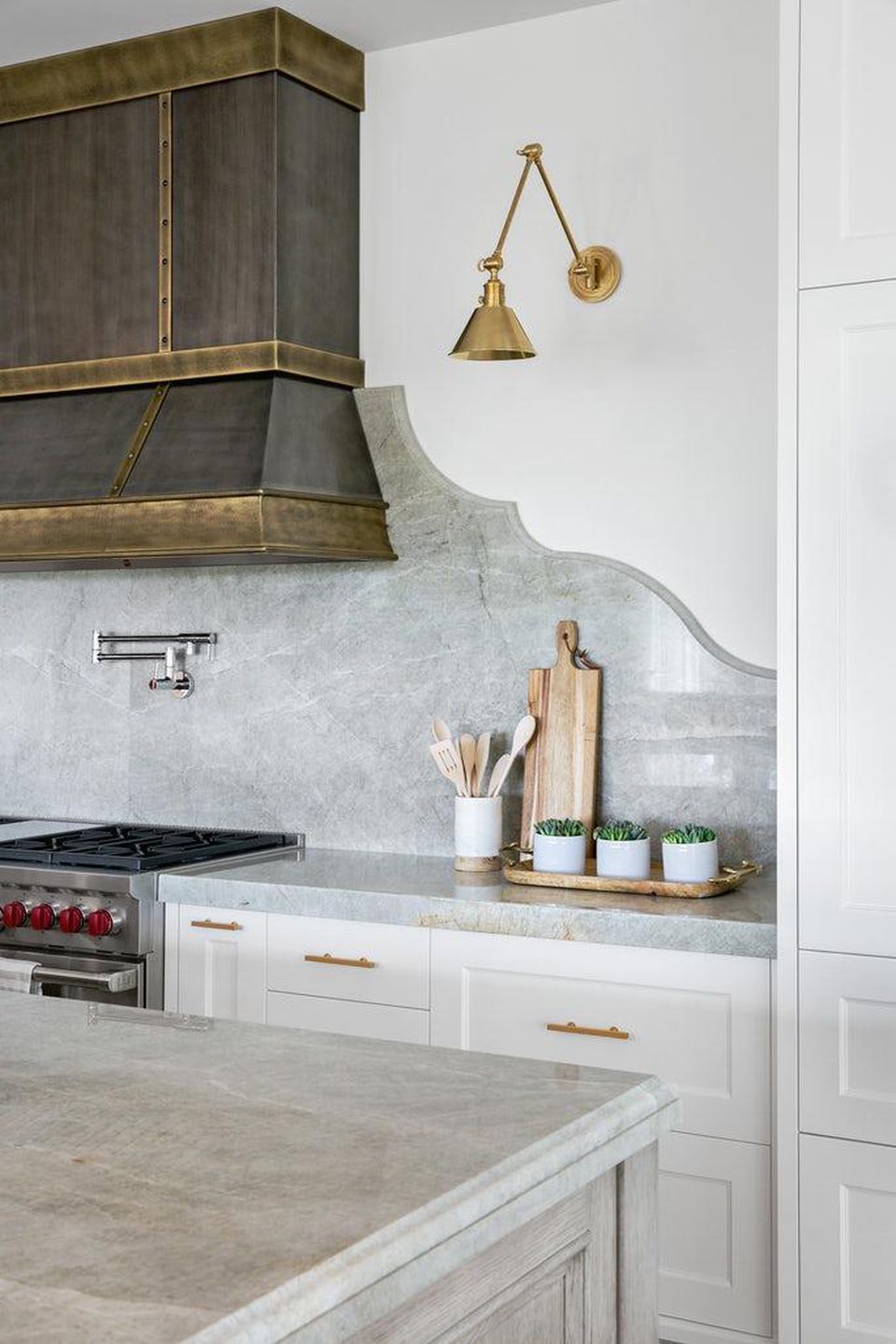 In kitchens with adequate wall space, the accent lights can come from wall lights.Here, Garden City 1 Light Wall Sconce can understand the situation (that is, this marble countertop).
