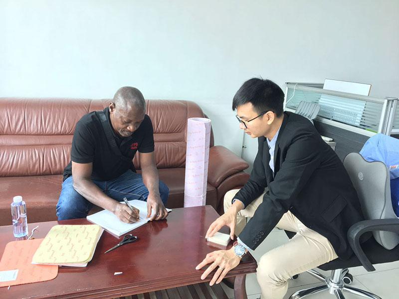 HIPPO BUSINESS LINKS LIMITED. Is a big shoe material trading company in Nigeria. And it’s representative Mr Ignatius got in touch with Wallkind on 18th August 2018. He was looking for good quality insole board for Nigeria market. After he studied Wallkind official web, he is interested in our company and product. So he decided to fly to China to visit Walkkind factory. 17th October 2018, the first time Walkkind sales manager Mr Evan met Mr Ignatius. Mr Evan warmly welcome Mr Ignatius and invited him to visit our show room to discuss further business. Ignatius was so happy to see that Wallkind has rich product line of insole board. He selected some samples from the display room and compared with his own sample. Unfortunately he found their materials are different. The samples brought by Ignatius is made of non woven fiber. And walkkind product is cellulose material. But Ignatius did not feel sad at that moment. Because he was attracted by walkkind paper insole board’s quality and performance. He though it would be a potential sales in Nigeria market. So he chose a few model that he tough which might be sold well in his market. And Mr Evan quoted him price for inference. Ignatius though price is more expensive than non woven insole board. But paper insole board with advantage that can not replaced by non woven such as recyclable, green material, light weight, natural PH, good bending property and folding property. Ignatius agreed that and believed his client would like them. But he has to do a market research to confirm which model is suitable for his market. So Mr Evan offered many samples for each model that selected by Ignatius. Then Mr Evan invited Ignatius to visit Walkkind workshop including office building, production line, laboratory, and warehouse. Ignatius was very satisfied with Walkkind’s strength. He was happy to see Walkkind formal production environment and strict quality control. And the stuffs are experienced and skillful. He believed walkkind can supply what he want and he can get quality guarantee from there. After finishing the discussion, Mr Ignatius went back to hotel and brought with Walkkind samples. He left his contact info to Mr Evan for discussing further business.