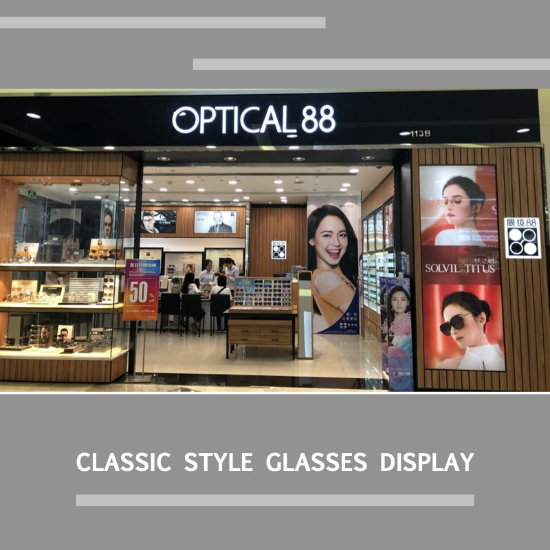 Those old classic opticians are more mature in marketing and store display. Look at this brand - Optical 88. They have window displays, in-store and out-store advertising, wall displays, and counters. In front of the counter, there are also chairs for customers to sit which make it more comfortable when shopping. This will add to the great shopping experience. Through the display of counter, let customers and sales more communication and interaction. The optician shop of general grade USES this kind of means more.