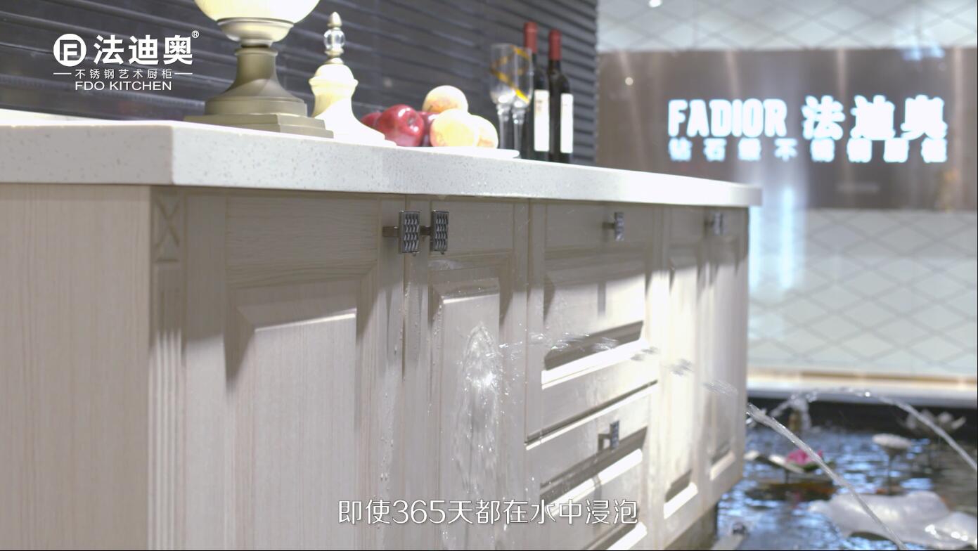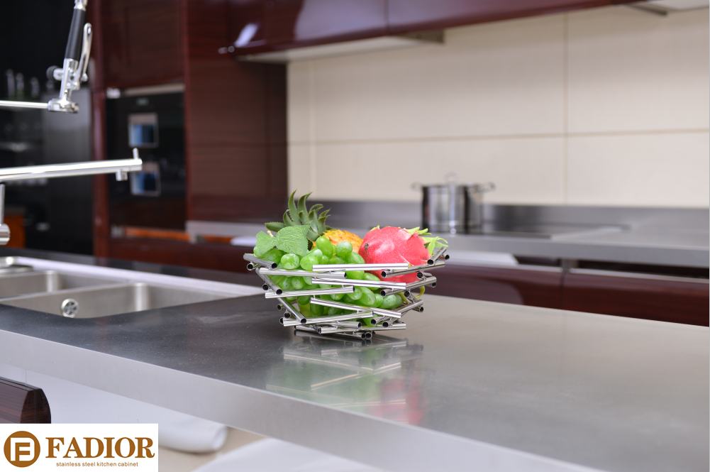 For us, FADIOR stainless steel kitchen cabinet, we can ensure all material used is 304 grade stainless steel, for both the carcass and door, even the small screws, thus to bring our customers a perfect quality kitchen which is 100% water-proof and can last for 30 years above!