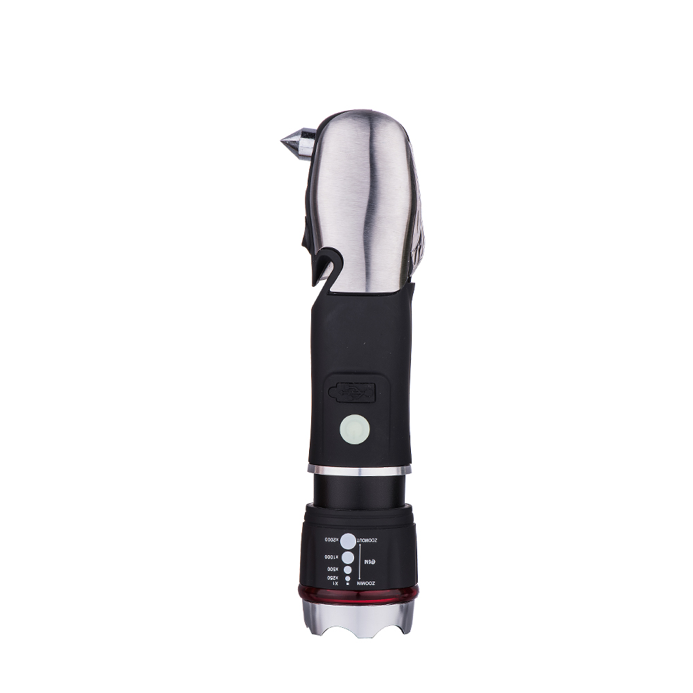 FunctionFlashlight/Emergency White Flash/Zoom Focus/Tactical Head/5-in-1 Multi Tools/Safety Hammer/Seat Belt Cutter/USB Charging