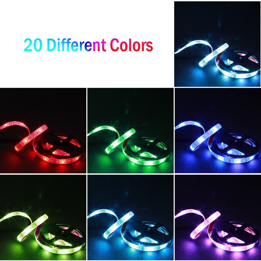 2M Waterproof USB LED Strip Lights RGB 5050 TV Bias Background Lighting with 17 Keys RF Wireless Remote Controller