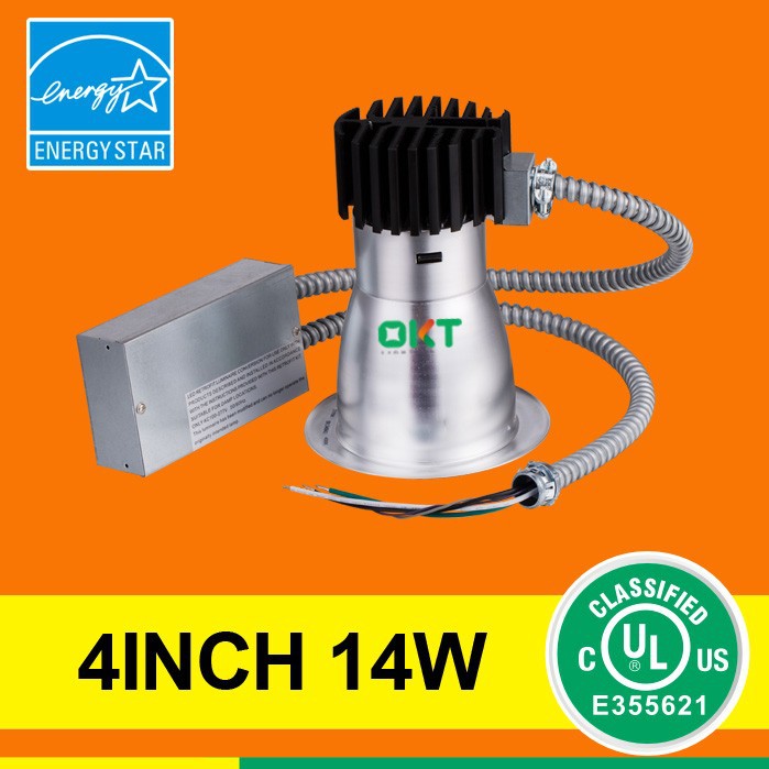 The OKT 4inch LED Light Engine Comfort Clear Reflector downlight are suitable for 100~277Vor 120V AC Input with fired-rated Junction box, which delivers high lumens of exceptional 80+ CRI, Lifetime > 50000H with 3000K, 4000K, 5000K color temperatures options. It can replace for most manufacturers incandescent, CFL or H.I.D. fixtures with apertures of 4.1" min.to 4.7" max diameter. Easy conversion method and installation can be performed from below the ceiling without removing existing fixture.