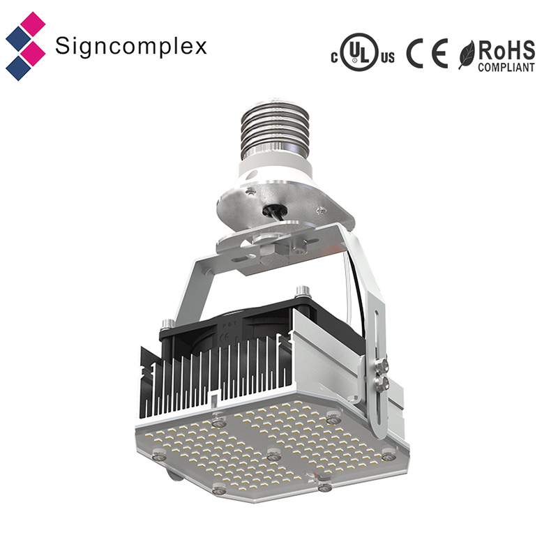 LED Retrofit is designed as economic replacement for HPS.Its adjustable U bracket suit to horizontal and vertical mogul(E40) holder.It’s more efficient than LED corn light no matter in high bay,shoe box,street light or wall pack for its one face emitting.