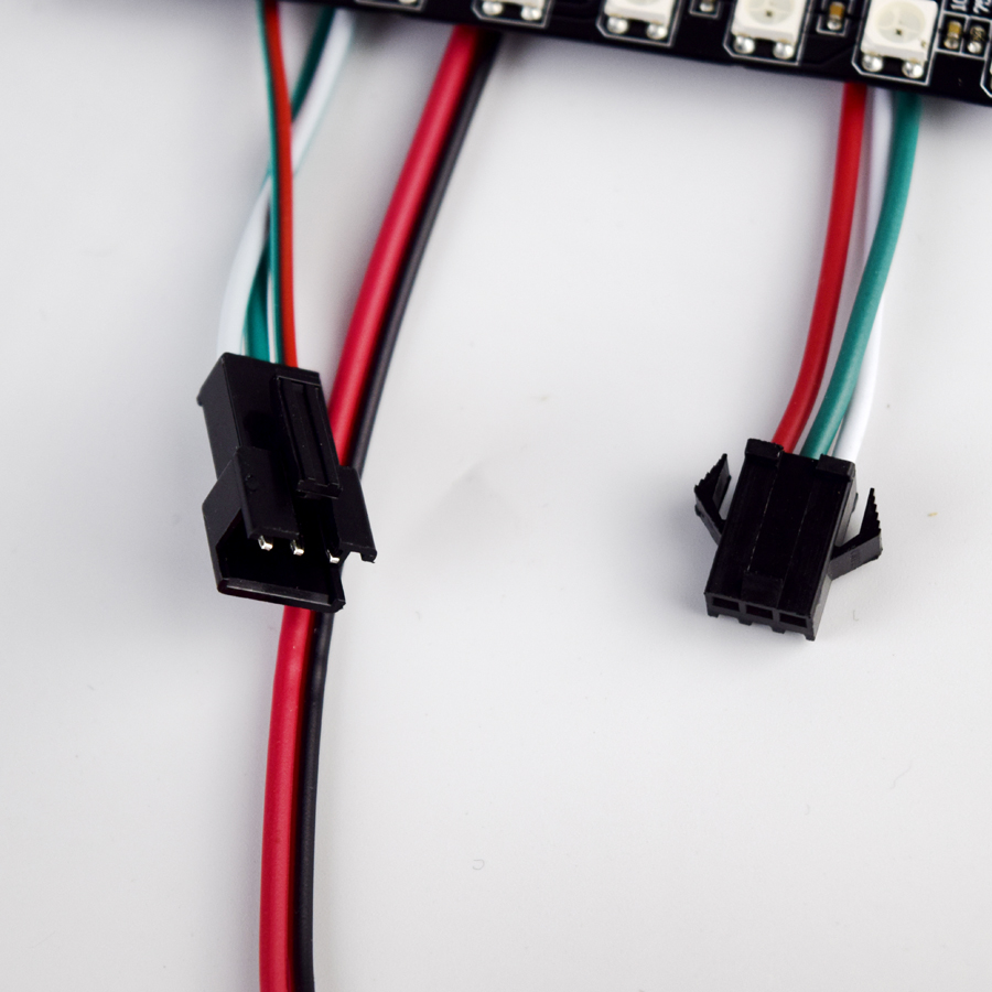 Attached to each flexible LED matrix are two 3-pin JST SM connectors and two sets of bare power cables (input / output),