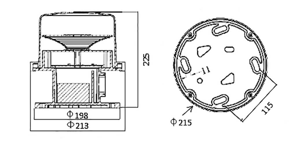 | Overall size(mm) | 213 by 213 by 225 |