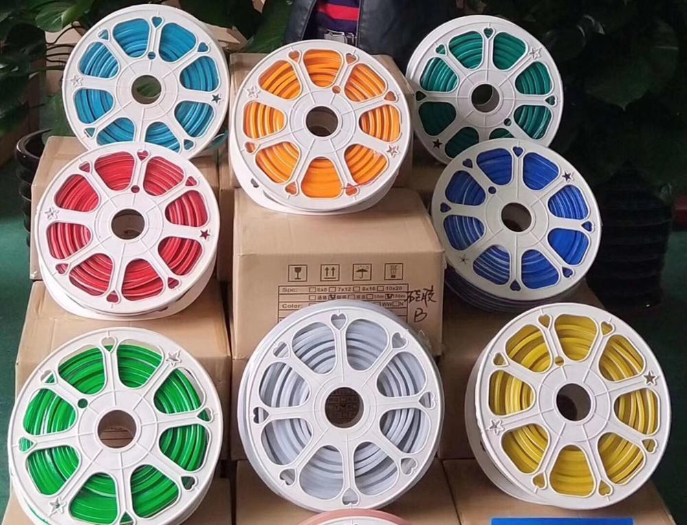 Specification: Item: 12v LED Neon Flex Light RGBViewing angle: 120 degreeColor: RGB, Red, Yellow, Blue, Green, White, Warm white, Pink, Orange, PurpleSize: 8mm*16mm / 6mm*12mmLED Qty: 120LEDs/METERPower: 12W/MVoltage: AC220V/110V, 12V/24V DCUnit Cutting Length: 1M/Unit, Packing: 50M/Roll