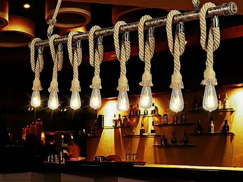 The Hemp Rope Pendant lamp is suitable for restaurants, cafes, bars and other leisure places. The twine chandelier lights up with the Edison bulbs, giving a warm feeling and making the whole environment more comfortable and warm.