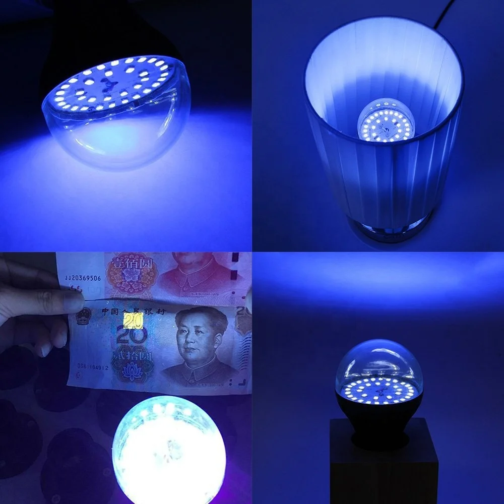 E26 E27 3W 5W 7W 12W 15W (50W LED Equivalent) A19 UV Ultraviolet LED Blacklight Bulb for Indoor Disinfection