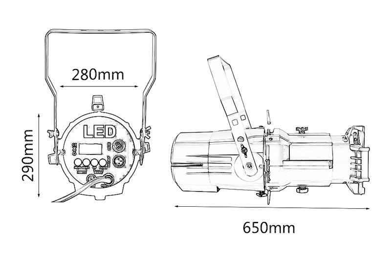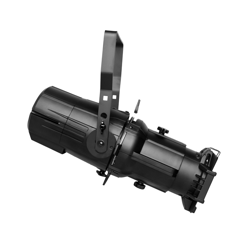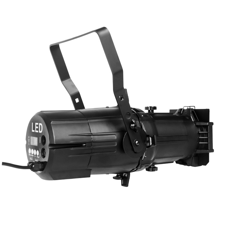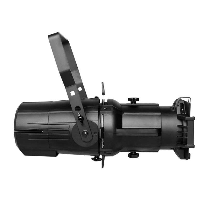 Ellipsoidal Spotlight(Imaging Light) is a light for studio and stage application. With single white COB LED source, the color temperature is adjustable and customized. It can make variable electronic strobe. The bright spot it send out can be shaped in different types. The gobo support can be installed in, with gobo replaceable.