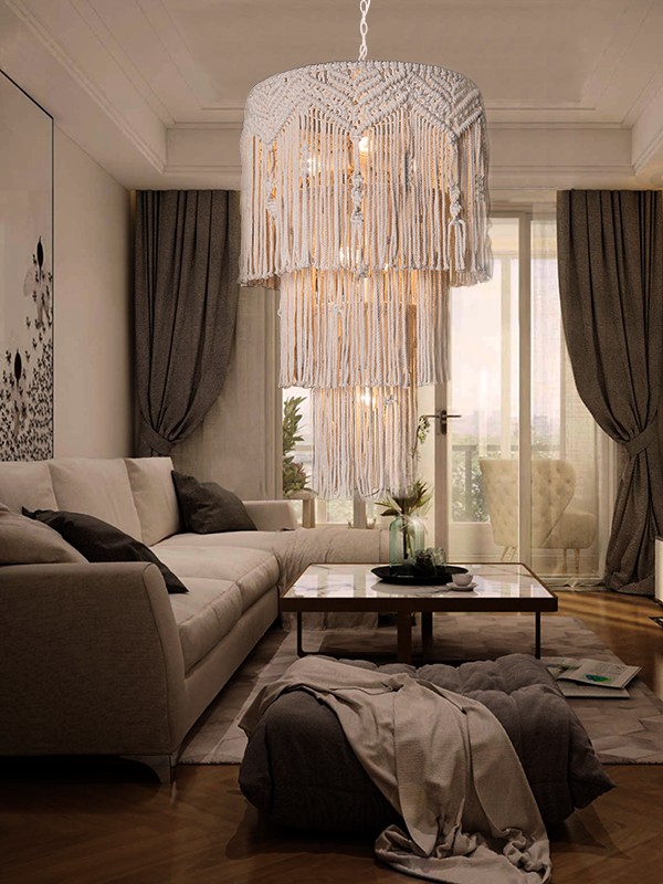Macramé isn't just for planters and wall hangings, this delicately and attention grabbing handmade hanging 100% cotton Macramé light embodies a brilliant blend of modern and chic charm, great for Boho and relaxed interior and home décor.