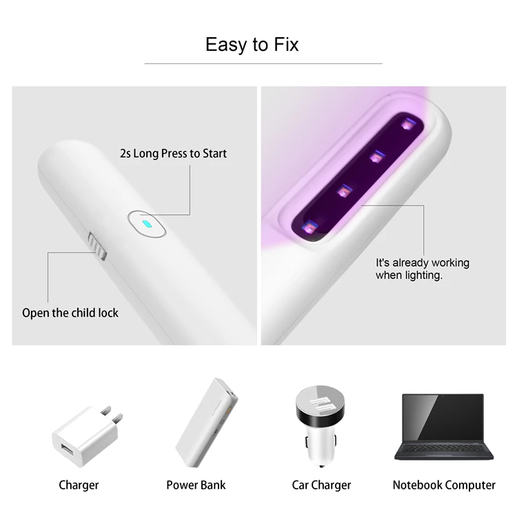 2.Eliminate 99% of bacteria in 3 minutes 3.360°Omnidirectional Sterilization |