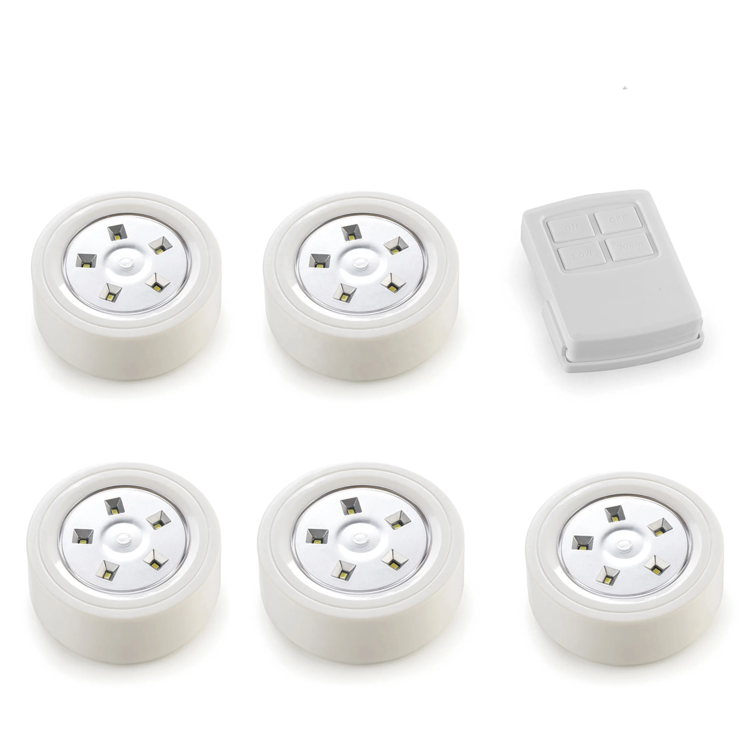 * Open the battery compartment of the remote control and the lights. Insert the AA batteries correctly.