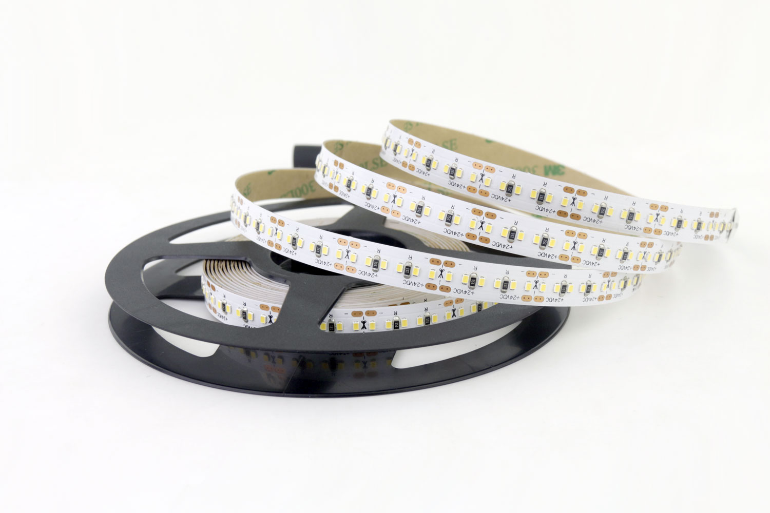 This versatile LED Strip light is in 16W/M (5.4 Watts foot). It uses a 2216 LED Chip placed every 0.17”(4.2mm). This LED Strip has low Density Lighting with 240 didoes per meter. It is cuttable every 3 LED chips or 0.5”(12.5mm) for 12VDC and every 6 LED chips or 1”(25mm) for 24VDC. The pcb width of this led strip light is 10mm. It has a strong 3M adhesive tape backing on IP20 and IP65 strips that allows it to peal and stick to most surfaces. LED Strips will only achieve their maximum Lifetime installed in an Aluminum Profile to dissipate heat, protect them from elements, and create desirable lighting effects.