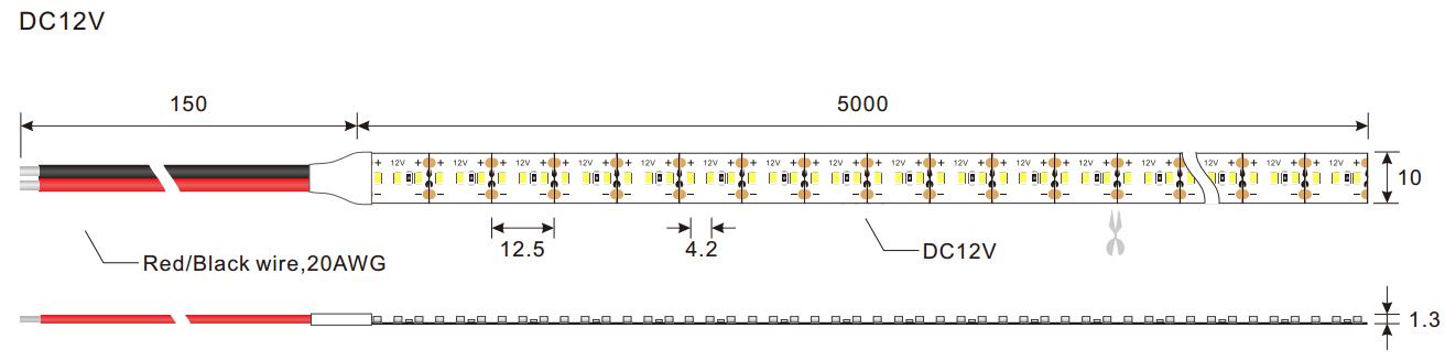 | LED QTY per meter | 240 | LED Strip dimension | 10mm (Width)*1.3mm(Height) |
