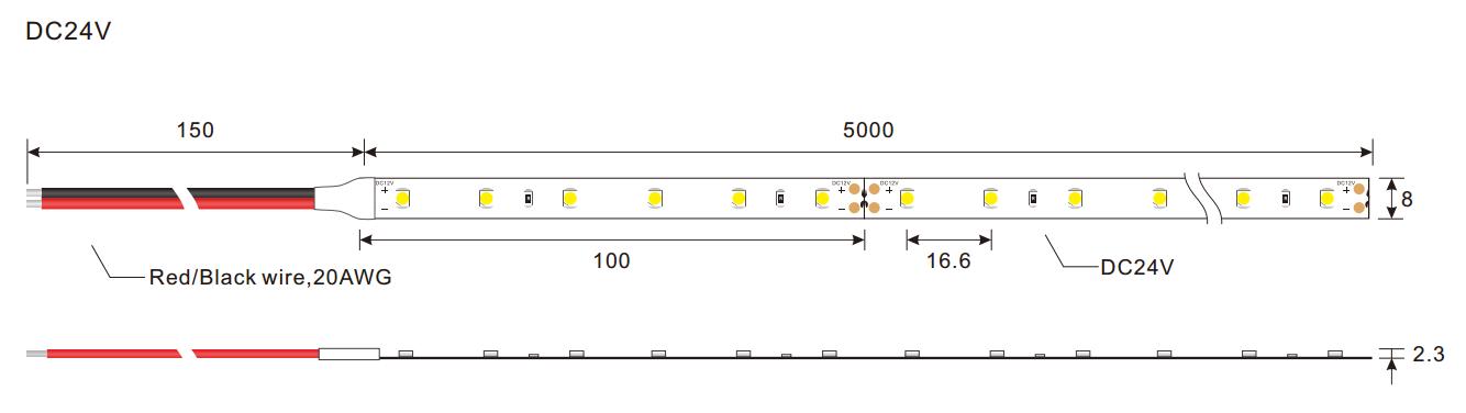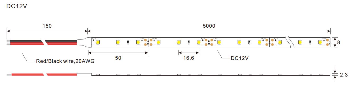 | LED QTY per meter | 60 | LED Strip dimension | 8mm (Width)*2.3mm(Height) |