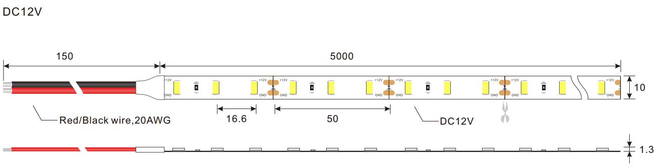 | LED QTY per meter | 60 | LED Strip dimension | 10mm (Width)*1.3mm(Height) |