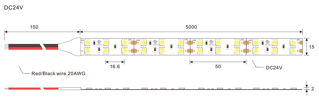 | LED Light Source | SMD5050 | Standard connector | 20AWG red/black cable on the end |