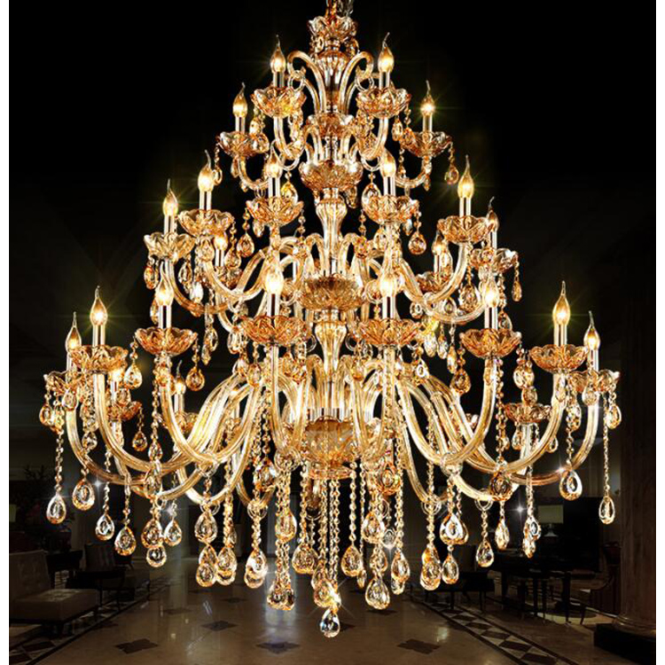 French Glass Bulb Shape Copper Issued Big Chandelier Lighting