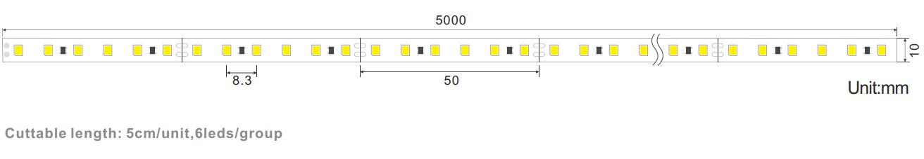 | Item No. | CCT | Length (mm) | LED QTY | Power (W/M) | Input voltage (V) | Lm/m | Beam angle | IP | CRI | Work Temperature | Warranty | Dimension |