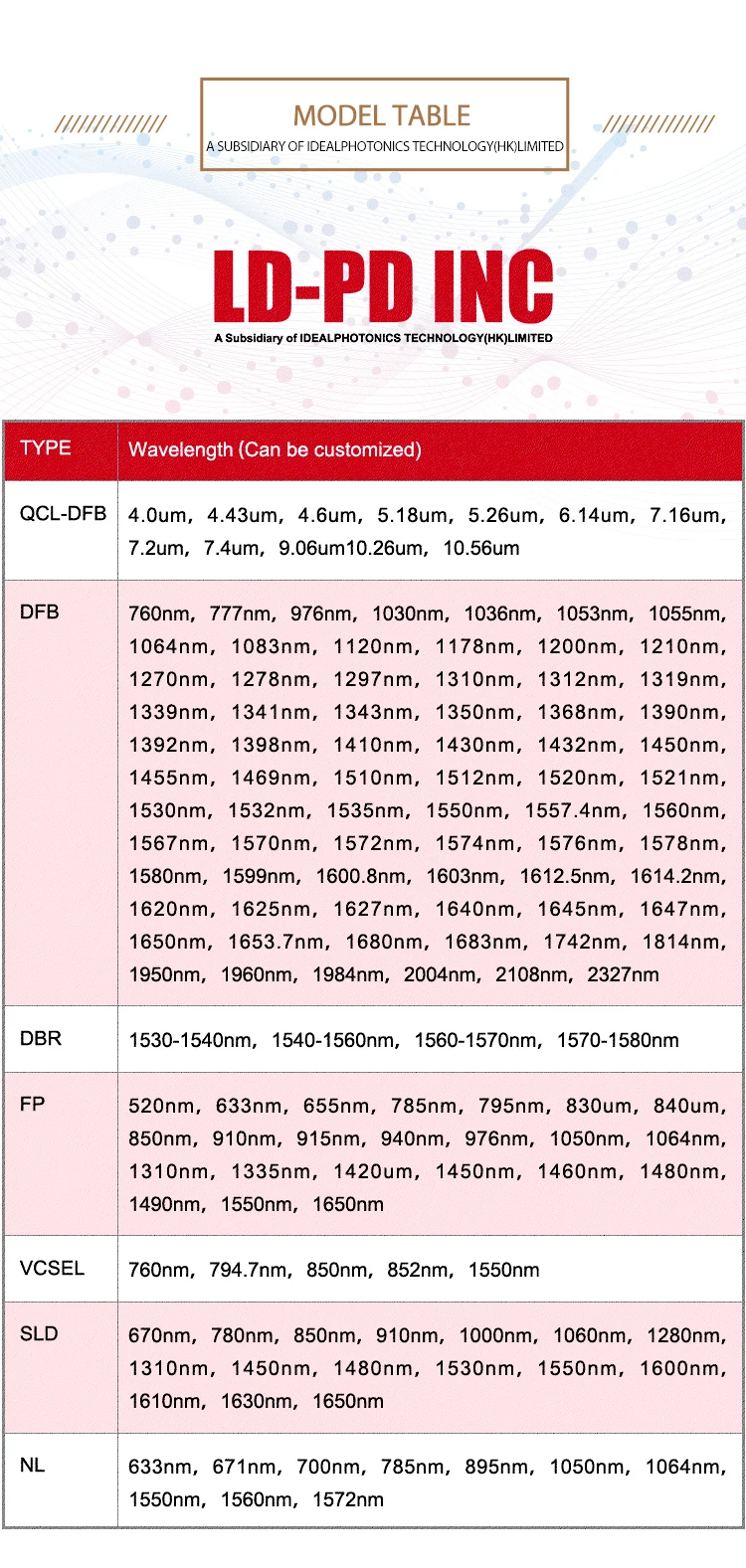 reliability laser diodes. What’s more, LD-PD has been a manufacturer of Si detector and high speed