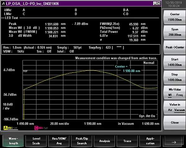 Centre Wavelength λ 1590 1600 1610 nm