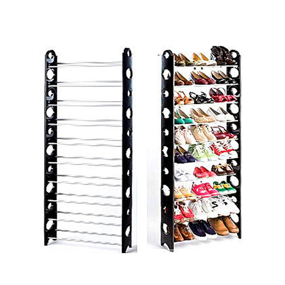 Home Organizer Simple Stackable 4/10 Tier 50 Pair Shoes Free Standing Shoe Rack Chrome Metal Fashion Footwear Cabinet Storage