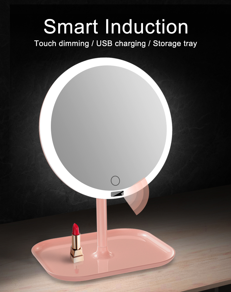 Hot Selling led Portable Beauty Desktop Touch Screen Makeup Mirror With Led Light Smart Plane Mirror with Best Quality